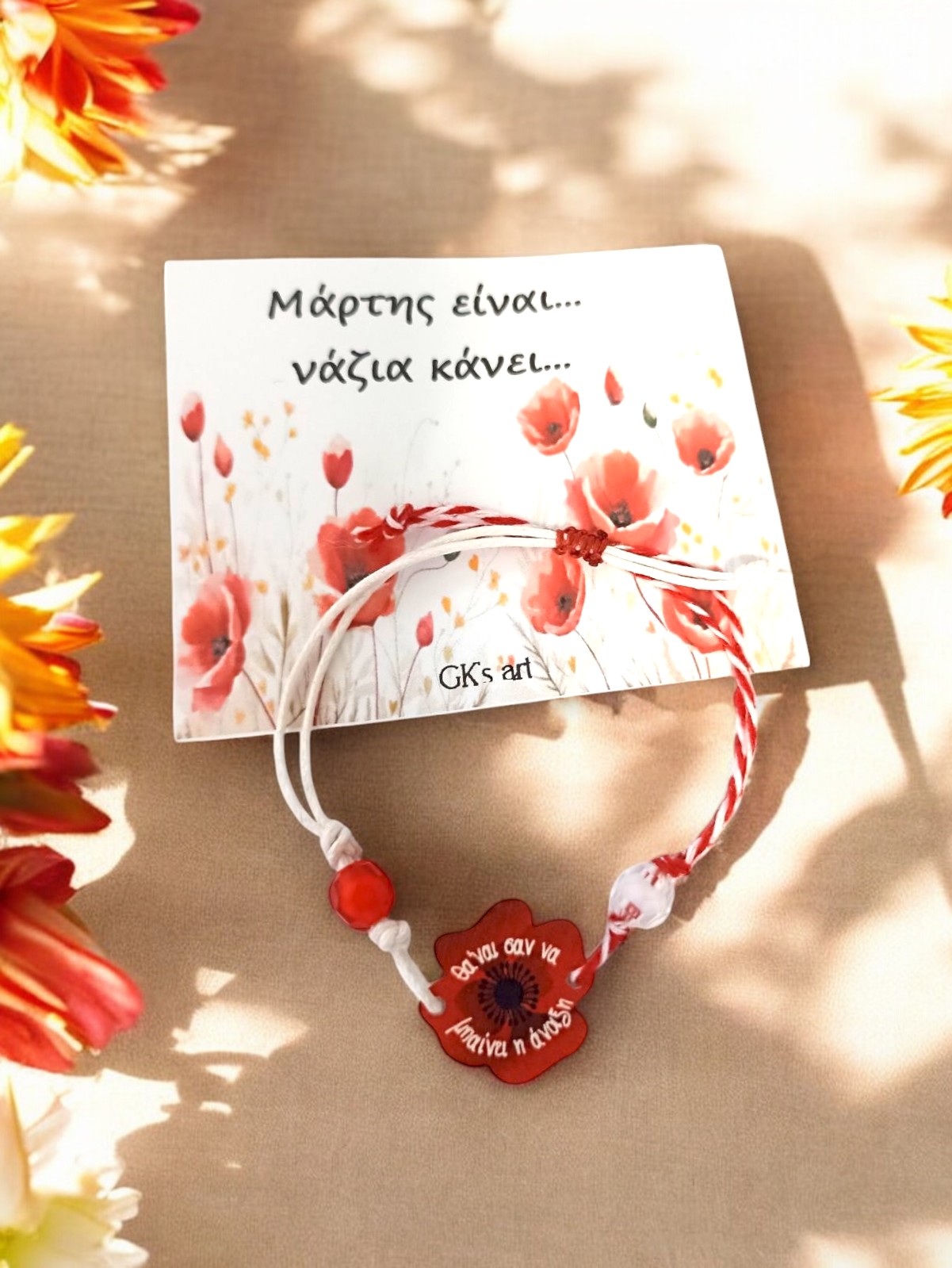 Ένα μικρό ανοιξιάτικο φυλαχτό που τιμά το έθιμο του Μάρτη και συμβολίζει την ανανέωση, την καλή τύχη και την προστασία από τον ήλιο.
