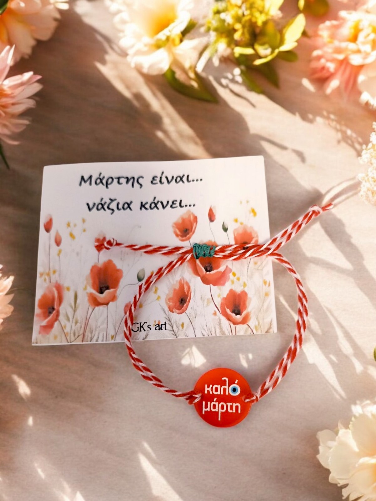 Βραχιόλι Μάρτης με κεντρικό στοιχείο μοτίφ plexiglass ΚΑΛΟ ΜΑΡΤΗ.