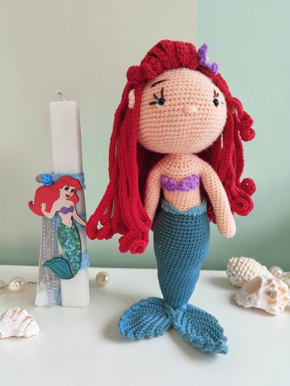 Η λαμπάδα ύψους 30 εκ. είναι χειροποίητα διακοσμημένη σε παραμυθένιο στυλ, ενώ συνοδεύεται από μια υπέροχη χειροποίητη πλεκτή κούκλα 35 εκ., που μπορεί να χρησιμοποιηθεί ως παιχνίδι ή διακοσμητικό στο παιδικό δωμάτιο.